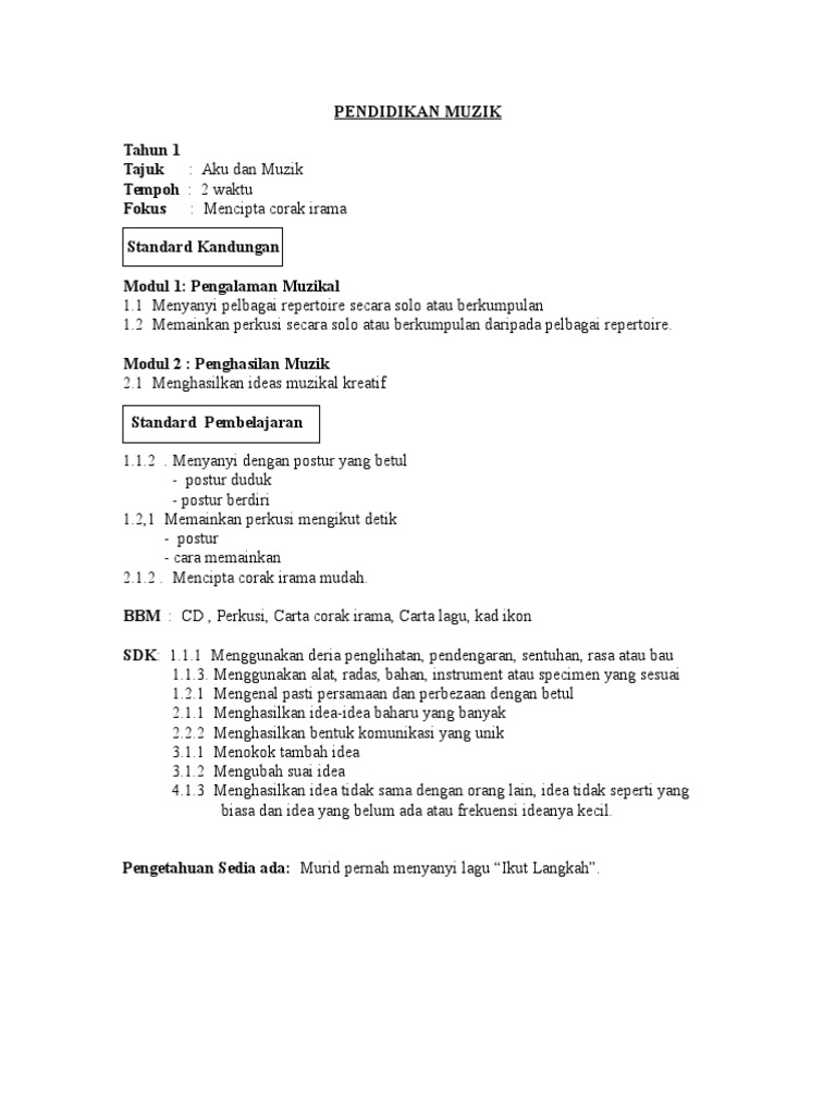 View RPH6 MZ T2docx from SKRIO 100 at IPG Kampus Bahasa Melayu. Tersebut bagi menghasilkan bunyi sound art212 Mencipta corak irama mudah menggunakan Unit 6. Download Modul Pengajian Muzik Tahun 1 PDF for free.